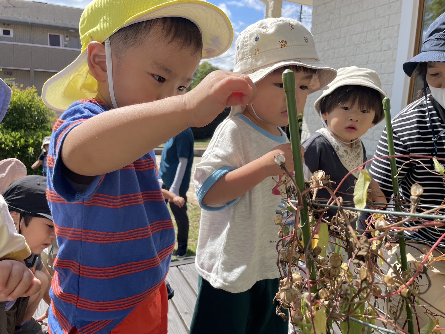 9月はお世話になったアサガオに感謝の気持ちを込めて、種を収穫しました。来年もまたこの収穫したアサガオの種を植えて、大事に育てていきたいと思います。アサガオさんありがとう。