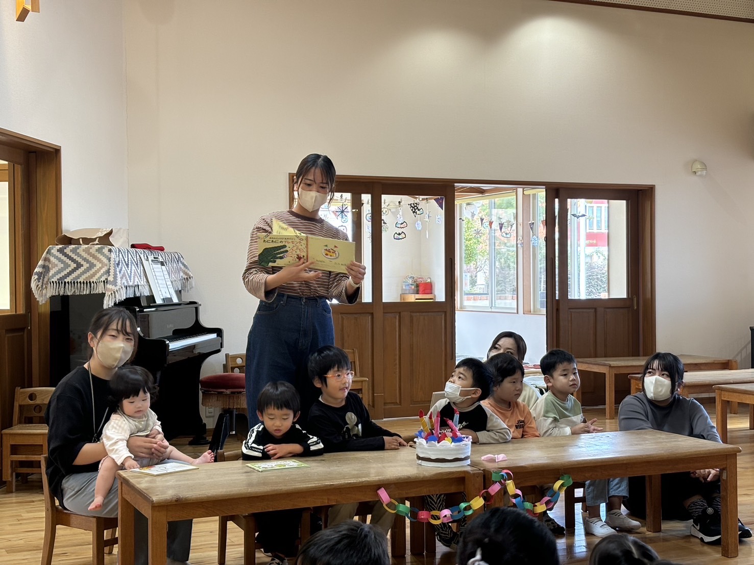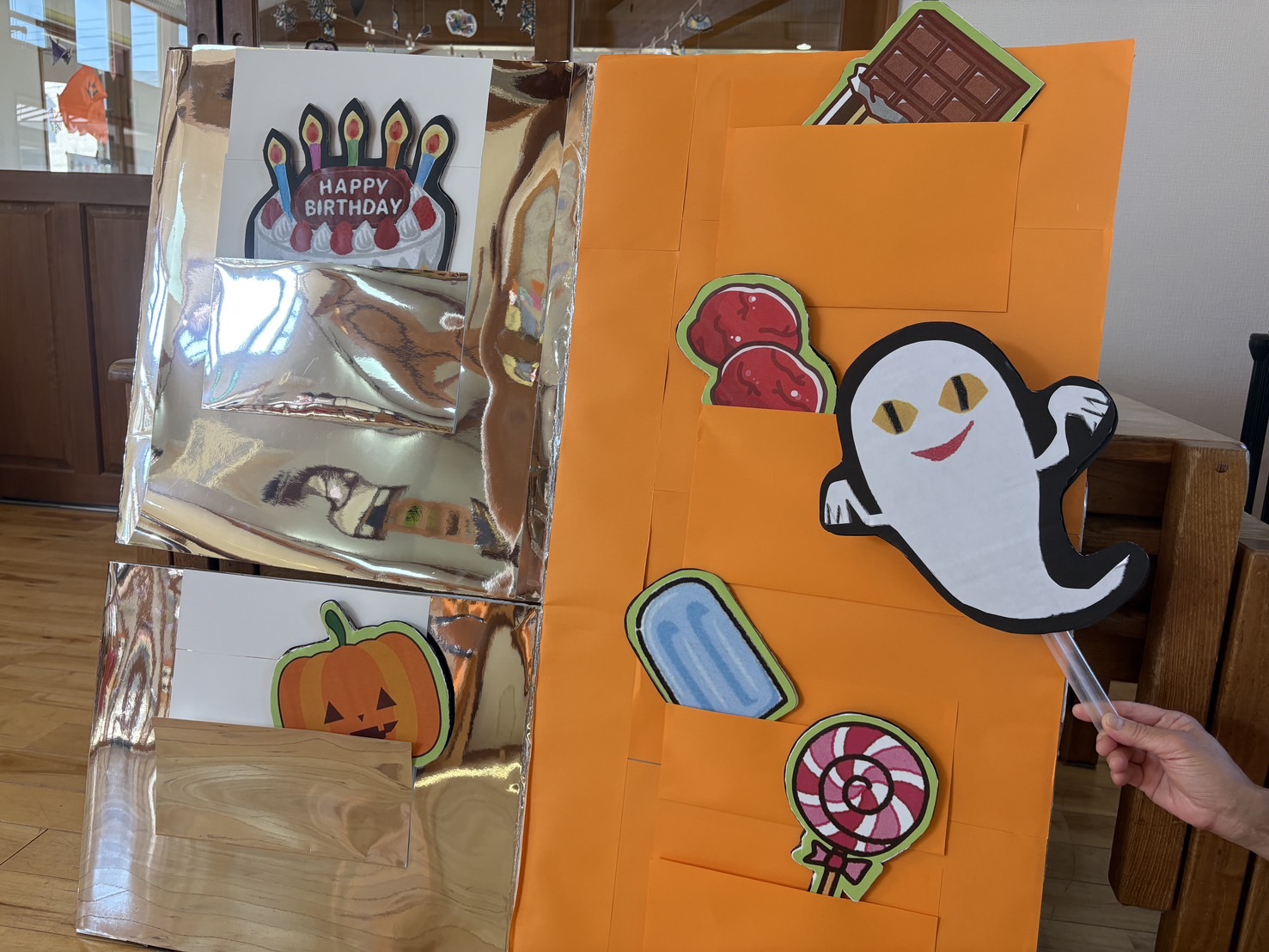10月の誕生会は、「ハロウィンお誕生日会」でした。みんながいつも楽しみにしてくれているワクワク楽しいのじかんは「くいしんぼうのおばけシアター」♪素敵なピアノに合わせて、「くいしんぼうの~
